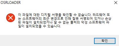 만약 DSEFix가 정상적으로 실행되지 않았다면, 드라이버 로드 시 아래와 같은 에러 메시지가 발생합니다.