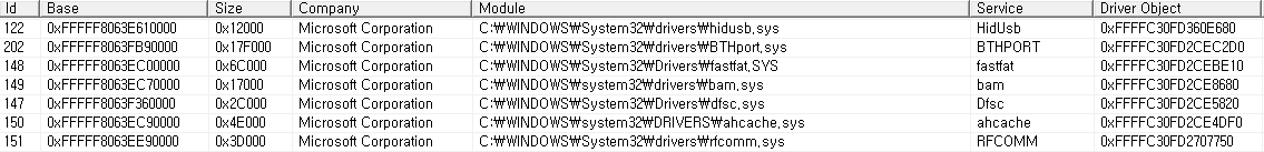 드라이버를 서비스 형태로 등록한 경우 DRIVER_OBJECT가 할당되며, 이 구조체로부터 드라이버 정보가 담긴 LDR_DATA_TABLE_ENTRY 구조체에 다다를 수 있다.