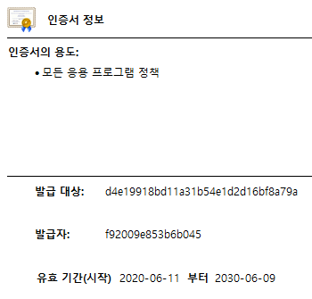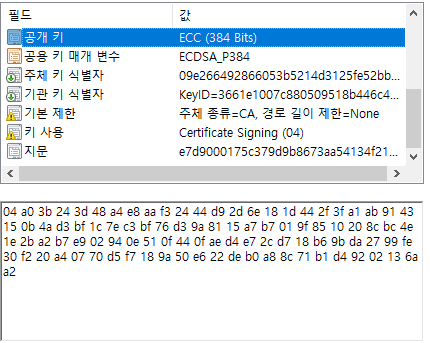 | - attestationApplicationId | HEX값 | 앱 패키지 이름 및 앱을 서명한 인증서의 지문(SHA-256) -> 인증서를 sha256하면 지문을 얻을 수 있음 |