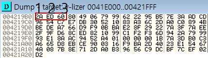 암호화 된 바이너리 위에 평문 핸들러 번호가 기입되어 있습니다. (미기입은 명령어 데이터)