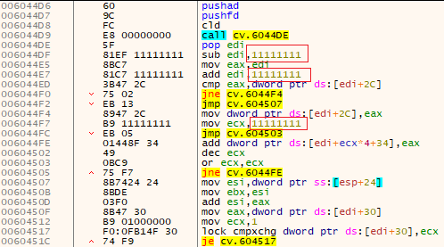 LODS명령어가 존재하는 경우 복호화 코드가 추가 된 후, 핸들러의 복잡도를 높이기 위한 코드를 추가합니다.