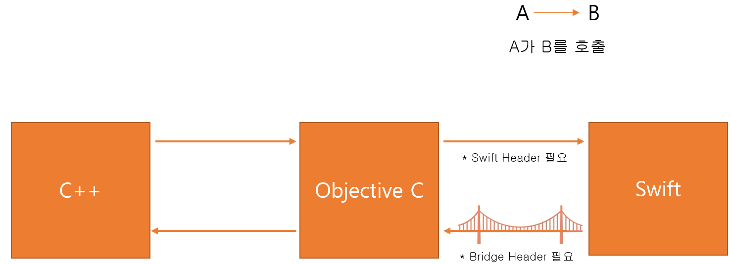 설정 : Build Settings -> Swift Compiler - General -> Objective-C Bridging Header 에서 헤더 설정 (보통 mm 파일 생성 시 자동 생성 됨)
